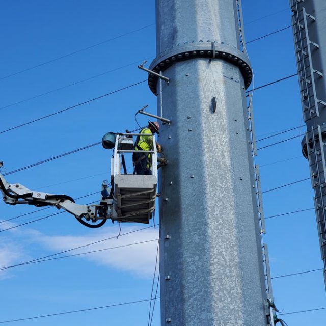 This required the installation of Marine Lanterns on the pole foundations and FAA Obstruction lights on the monopoles. The two monopole structures spanning the central shipping channel stand about 400 ft high and are the tallest in North and South America.